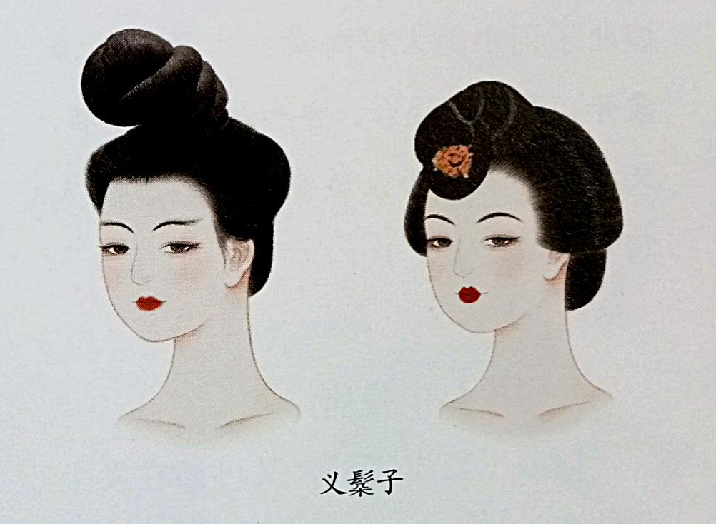 A popular style of fake bun among noblewomen. This bun was pre-made and could be worn directly. Initially, the bun stood upright on the head, but over time, the style changed to a bun that tilted forward and hung down, almost touching the forehead (inferred from original artifacts found in the Astana tombs in Turpan, Xinjiang, dated to the third year of the Kaiyuan era (715), as well as silk paintings unearthed from Tang tombs in Astana).