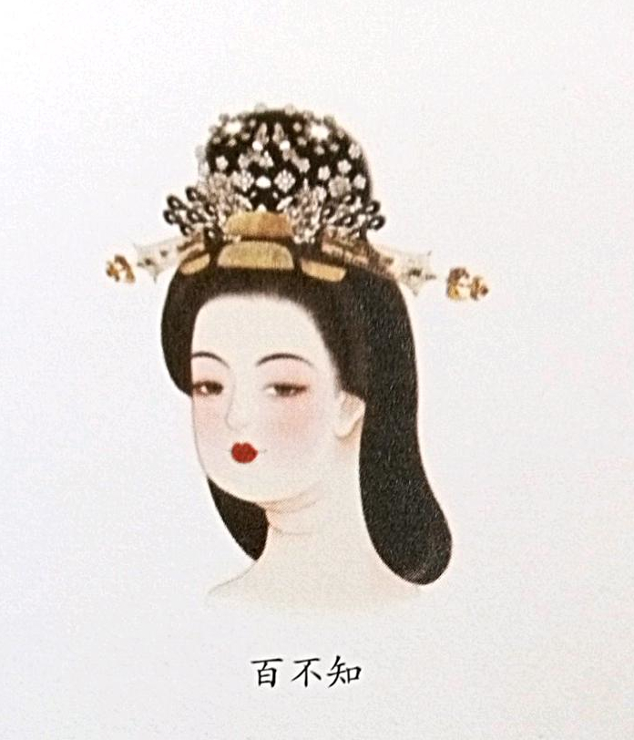 The text《唐语林》(táng yǔ lín) states: “In the Changqing period, women in the capital wore jewelry with various decorations such as gold, green gems, and pearls, with hairpins and dangling pendants, all beautiful, and they called it ‘Bai Bu Zhi’.” (Inferred from the crown ornament components found in the tomb of Lady Wu of Qi 齐国太夫人吴氏, discovered in the fourth year of Changqing (824)).