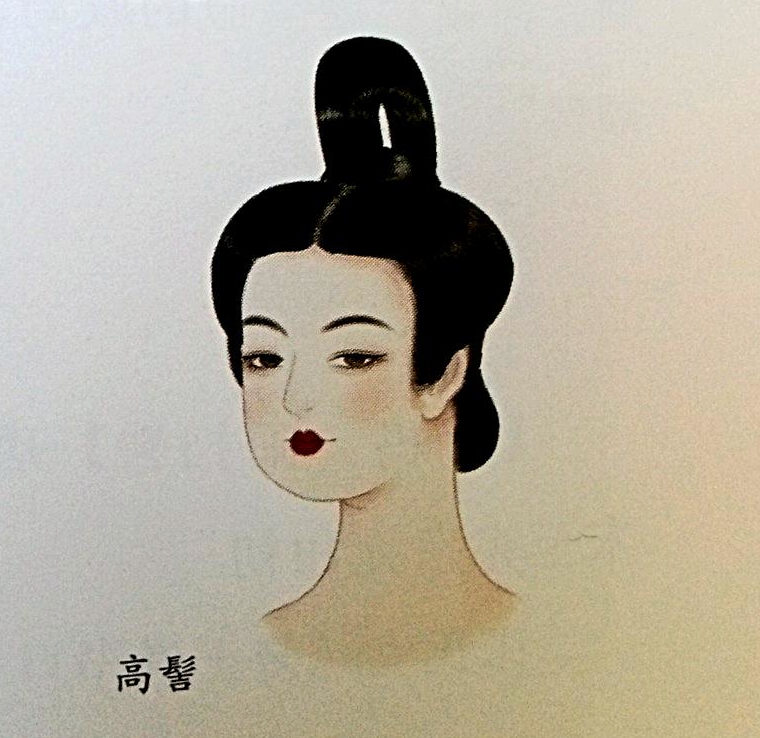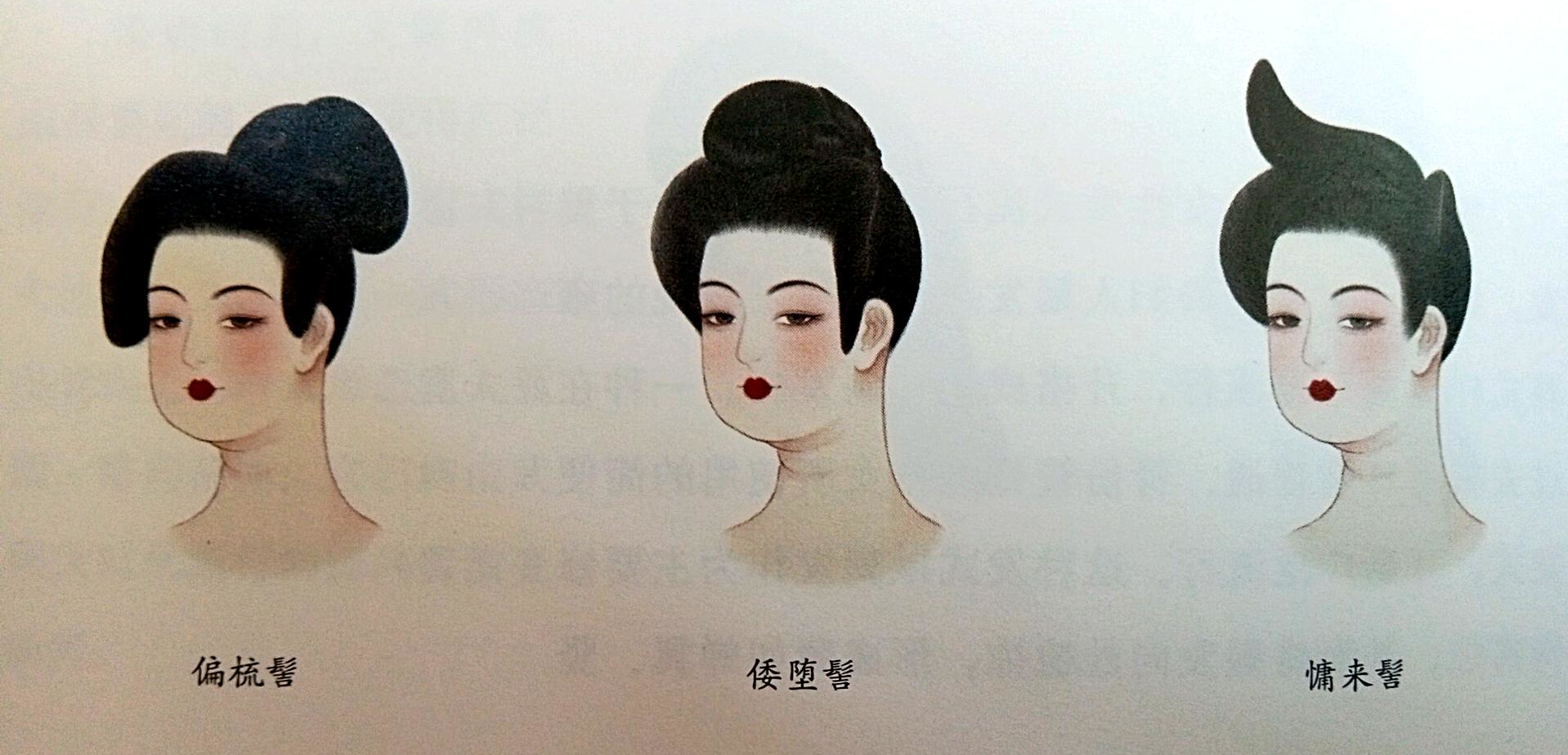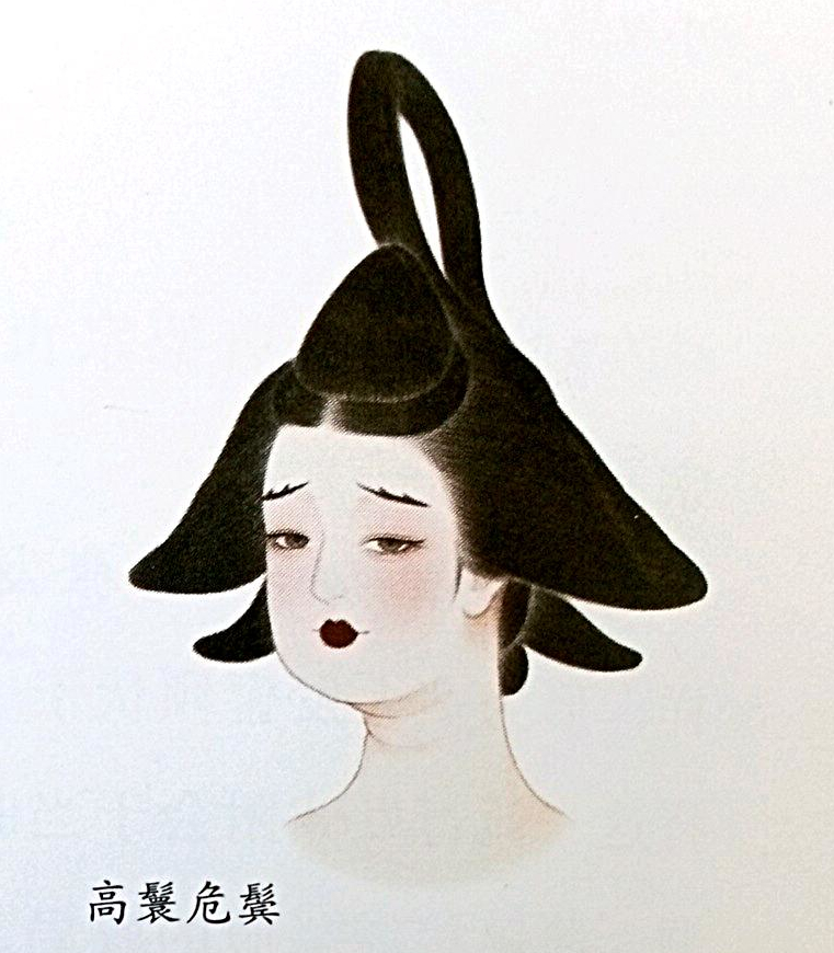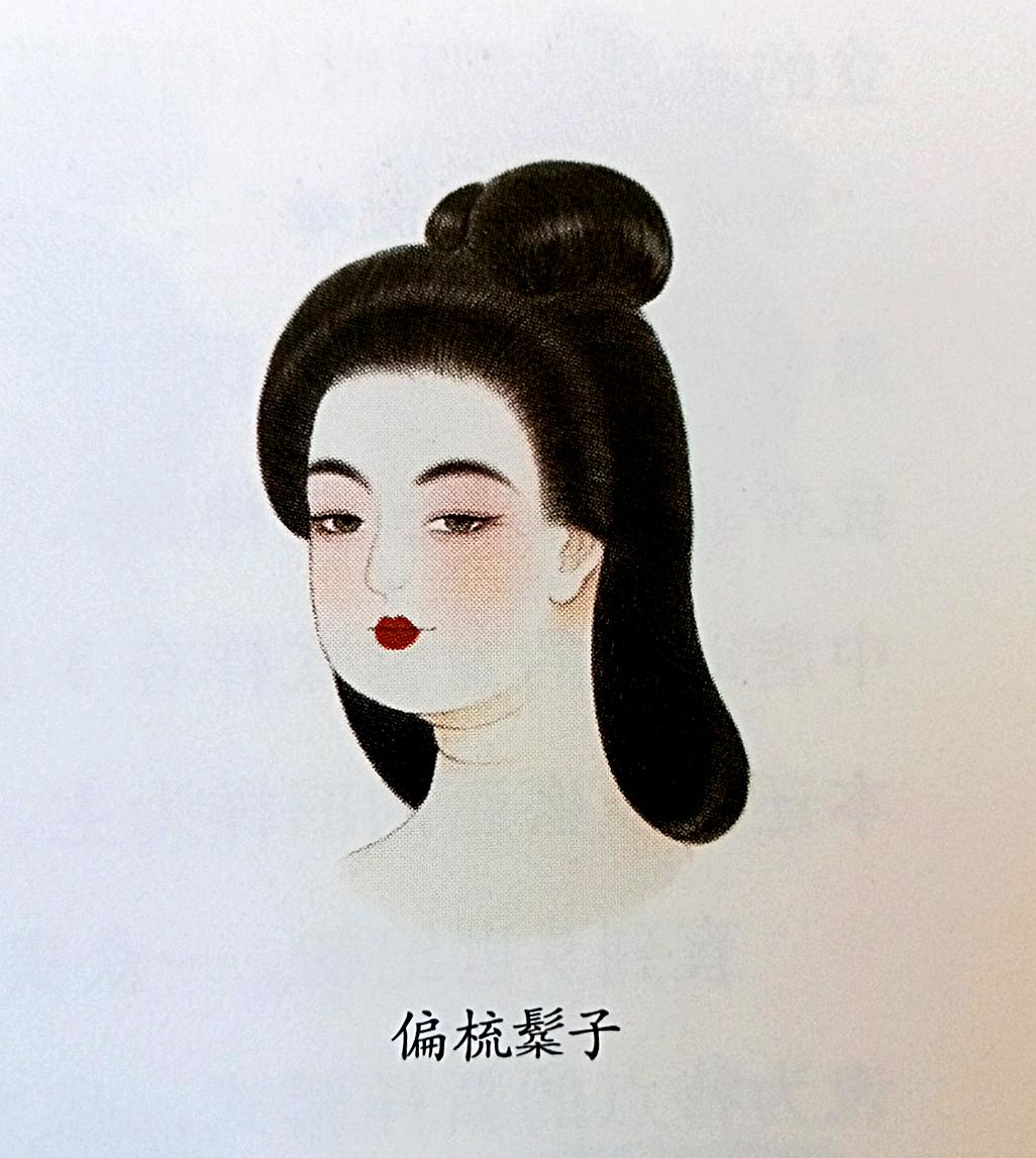 A hairstyle popular in Chang’an city before the late Tang wars, with a pointed bun at the front of the head becoming flatter, while the large bun at the back seemed to lean backward.