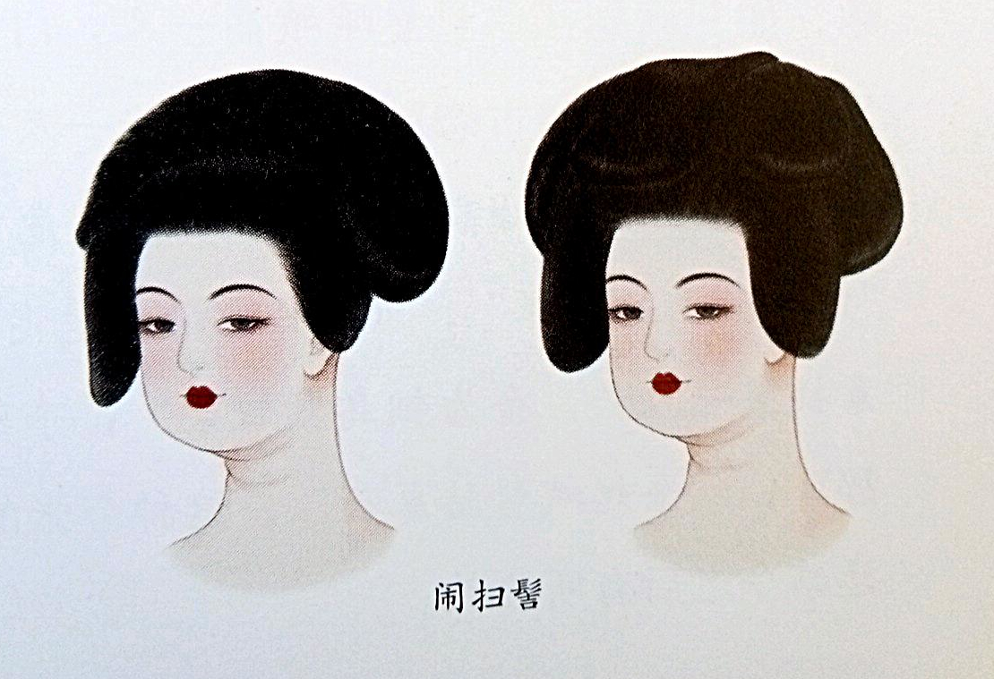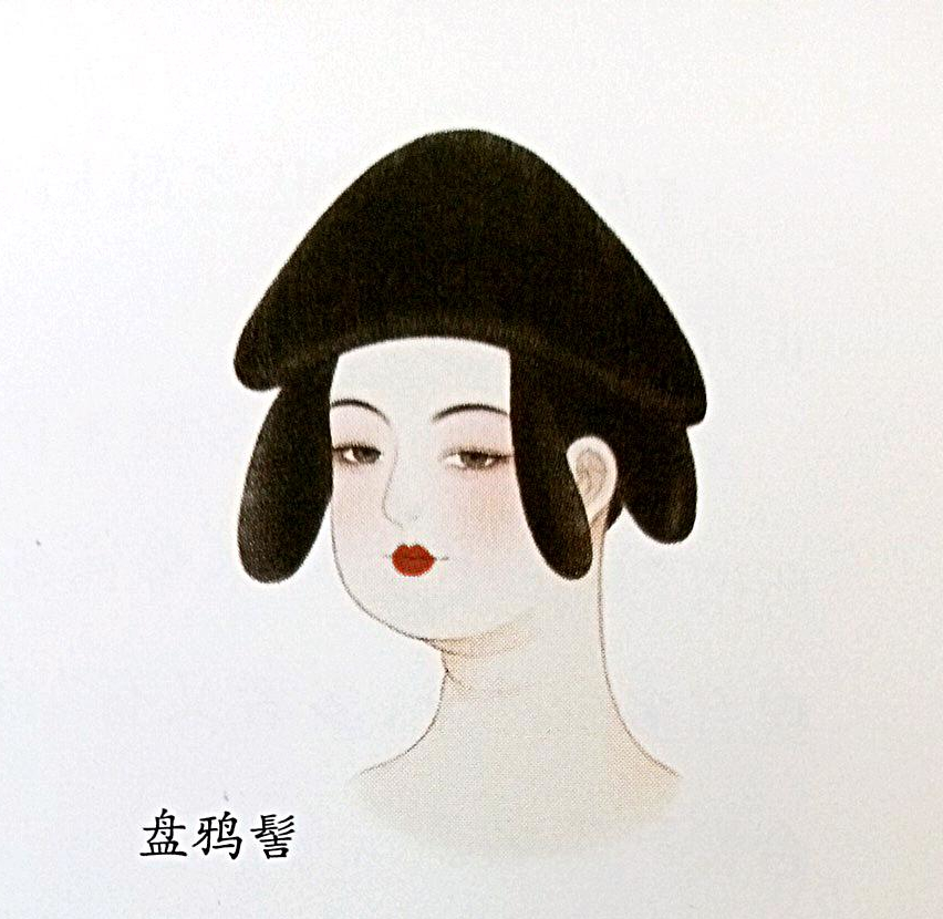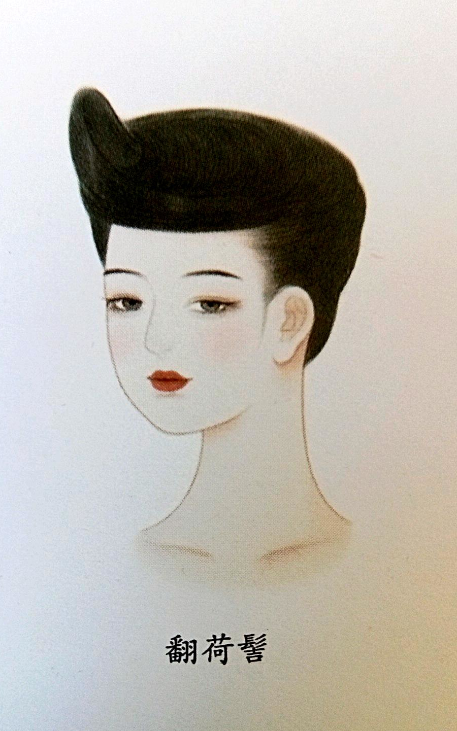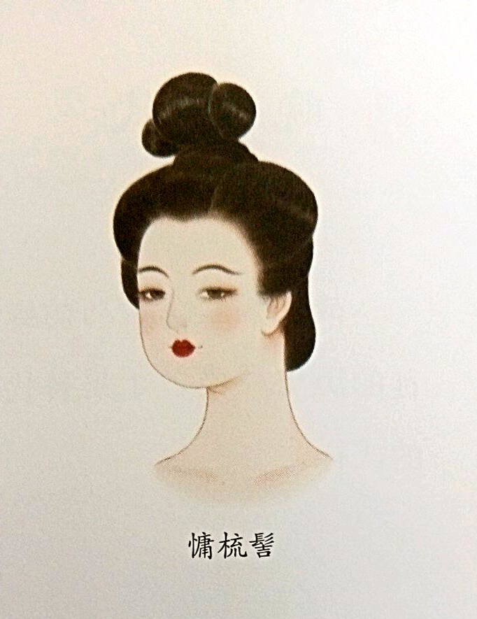 A hairstyle popular in Chang’an city before the late Tang wars, with a pointed bun at the front of the head becoming flatter, while the large bun at the back seemed to lean backward.
