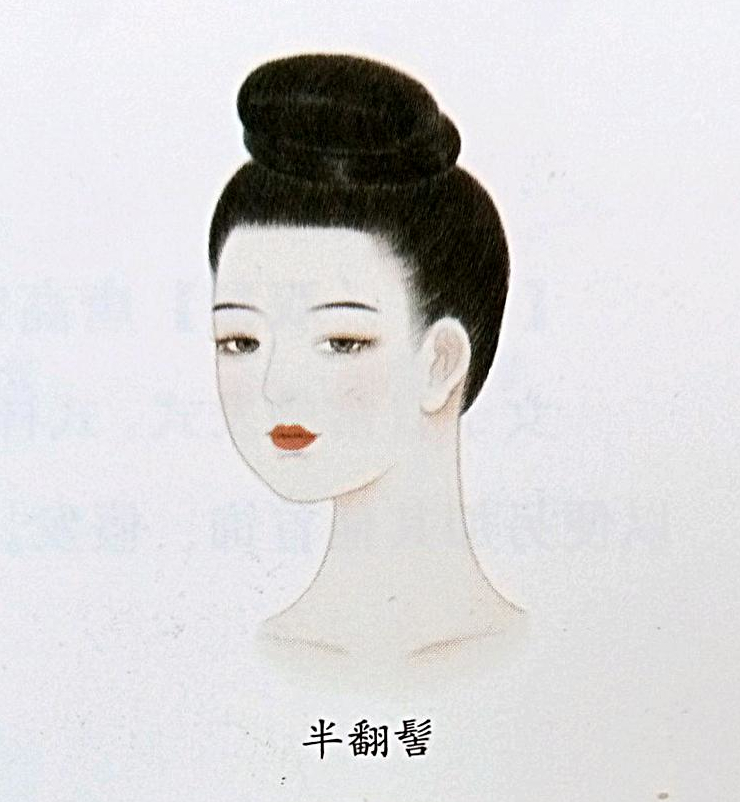 The term “半翻 bàn fān — half turned” refers to a style similar to the “Fan He Ji 翻荷髻,” but the bun is tighter and smaller, essentially a miniaturized version of the “Fan He” style.