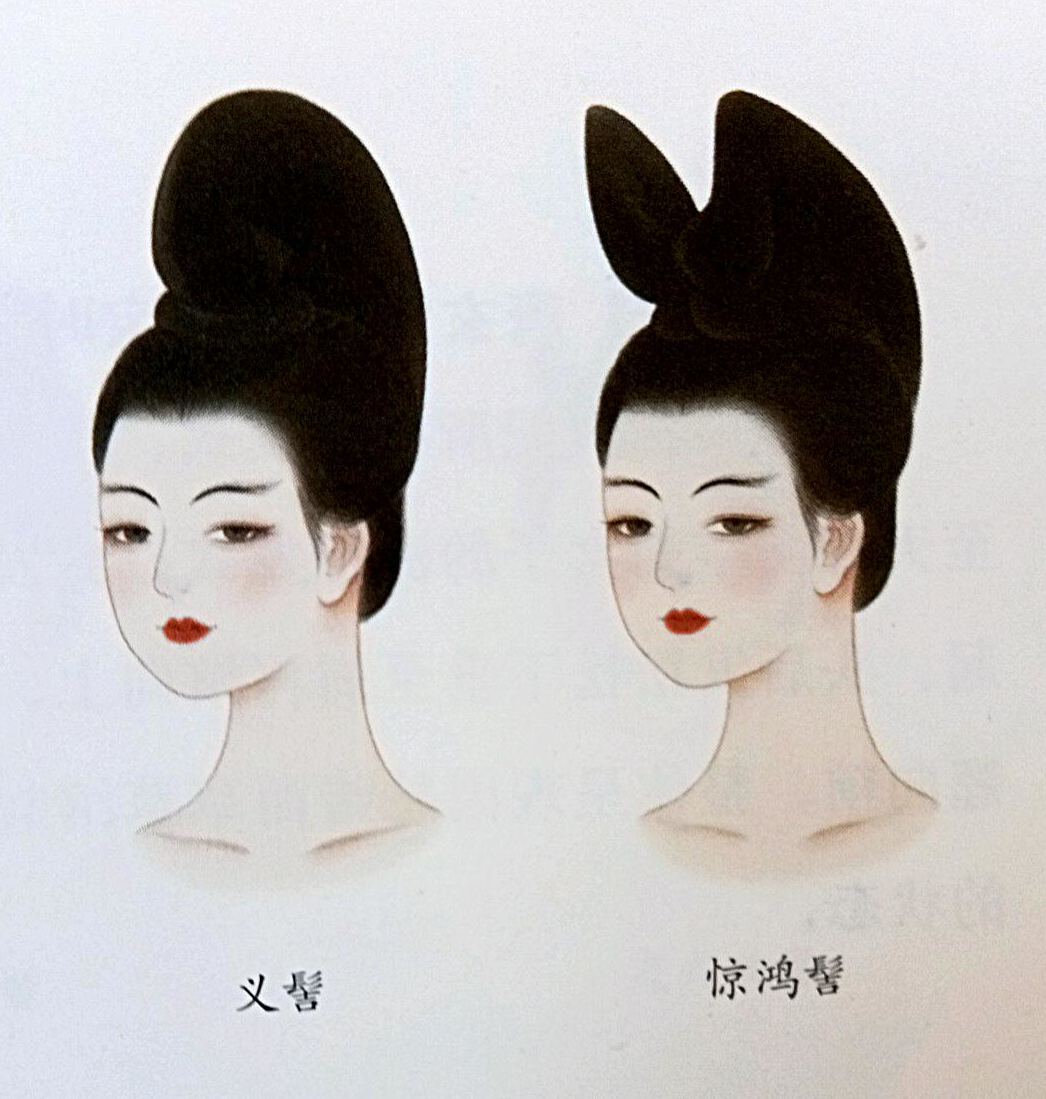 Yi Ji / Jing Hong Ji (义髻 ; yì jì) / (惊鸿髻 ; jīng hóng jì) — Wu Zhou to the Reign of Emperor Zhongzong of Tang