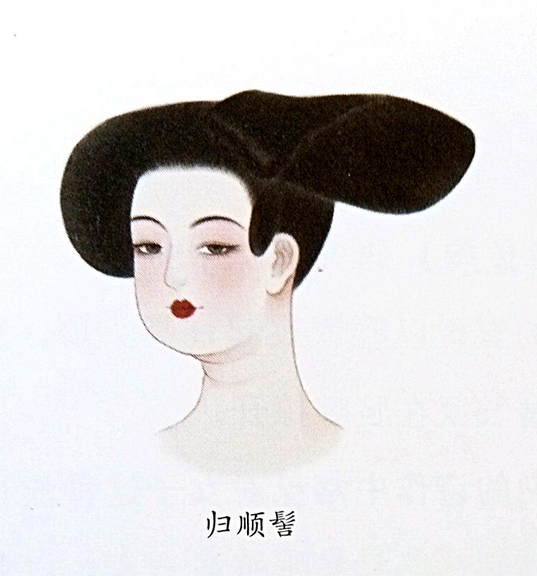 This is an exaggerated development of the Duo Ma Ji style, shaped as a large and wide bun tilted to one side. People at the time associated this hairstyle with the political situation when the regional military governors (节度使 ; jié dù shǐ) surrendered and the local warlords (藩镇 ; fān zhèn) successively capitulated, hence it was named “Gui Shun Ji 归顺髻”.