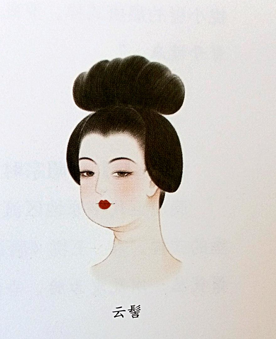 A hairstyle popular for quite a long time at the end of the Tang dynasty, a wide bun like a cloud, making it easy to attach various decorations such as hairpins and combs.