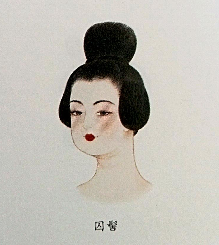 A daily hairstyle for women, widely used by maids in noble families. Hair was combed upward to form a sharp edge, and the bun was made on top of the head. The bun could be either fully rounded or small and pointed.