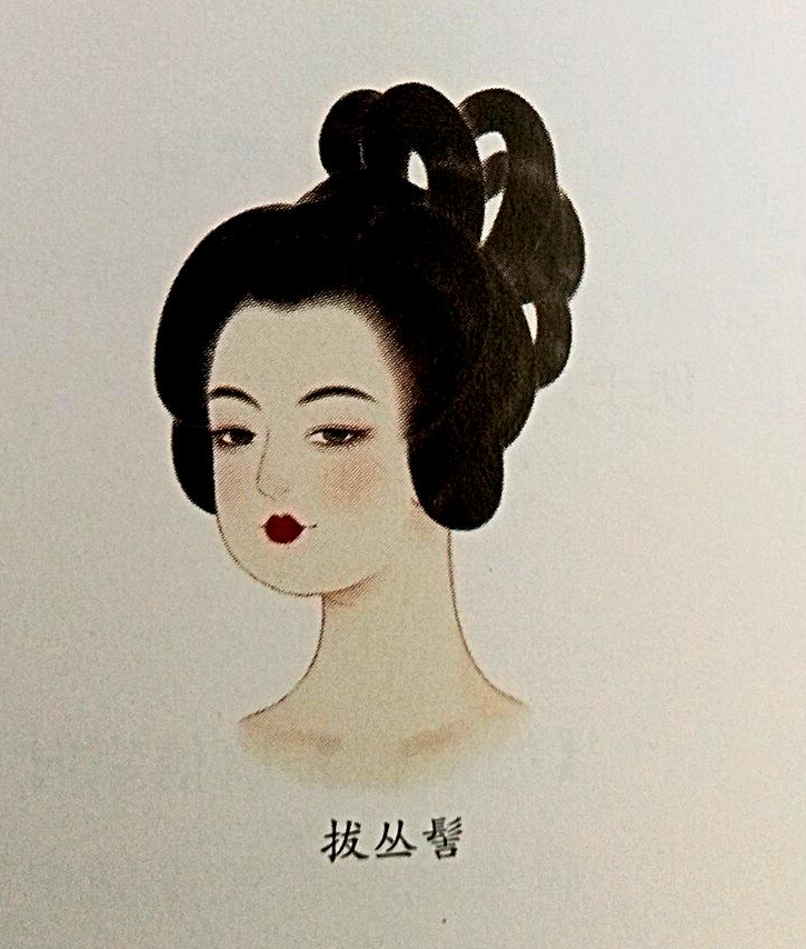 In《唐语林》(táng yǔ lín) by Wang Tang (王傥 ; Wáng Tǎng) of the Song dynasty it is mentioned: “At the end of the Tang dynasty, women combed bun called Ba Cong Ji; using messy hair as a base, hanging to cover the eyes (唐末妇人梳髻,谓技丛;以乱发为胎,垂障于目).”