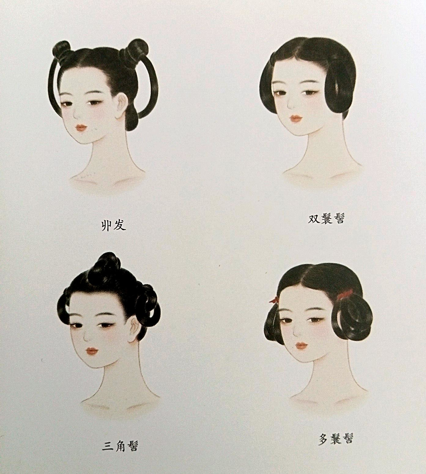 During the Sui, Tang, and Five Dynasties periods, the hairstyles of girls and young women who had not yet reached adulthood and had not undergone the coming-of-age ceremony (及笄 ; jí jī) did not change much.