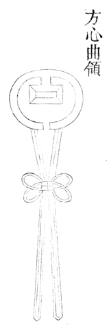This white “collar” is called Fang Xin Qu Ling (Chinese: 方心曲领 ; pinyin: fāng xīn qū lǐng), and it was not made in the Song dynasty but has appeared since the Tang dynasty.